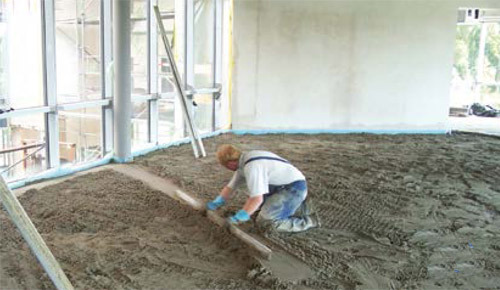 Wir empfehlen, den Estrich auf einer Dämmschicht aus Polystyrolschaum für die Dämmung von Industrieböden zu verlegen. Beachten Sie, dass eine hohe Bruchkraft und der Widerstand gegen Schlag und Stoß maßgeblich durch die Estrichdicke beeinflusst werden.