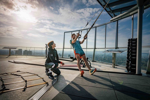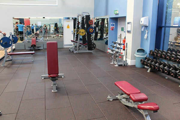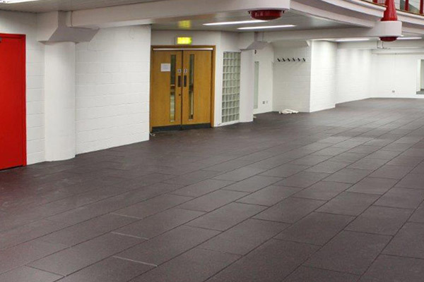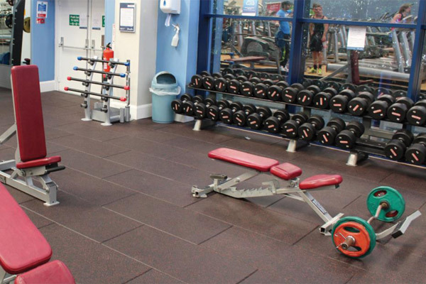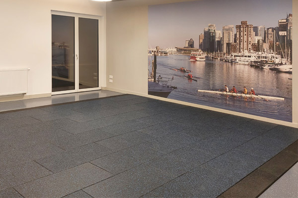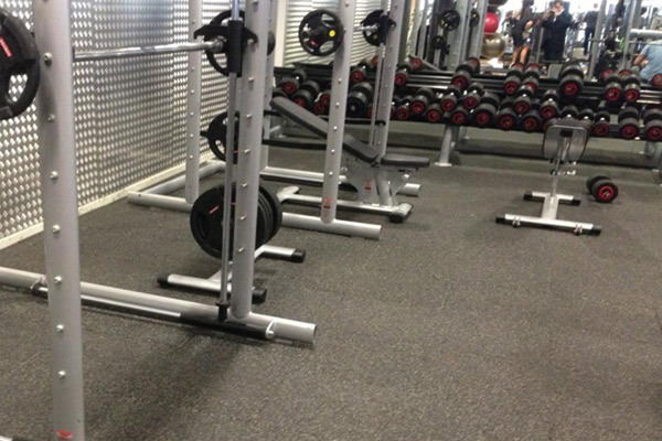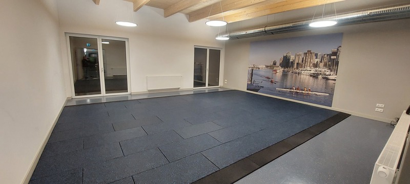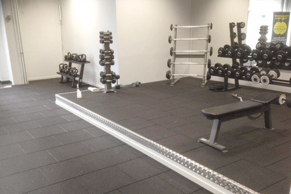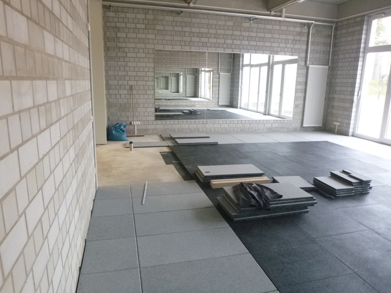 Langhantelbereiche. Hohe Belastbarkeit und eine außergewöhnlich hohe Widerstandsfähigkeit gegen mechanische Einwirkungen zeichnen den Bodenbelag aus. Zudem hat das Material hervorragende
