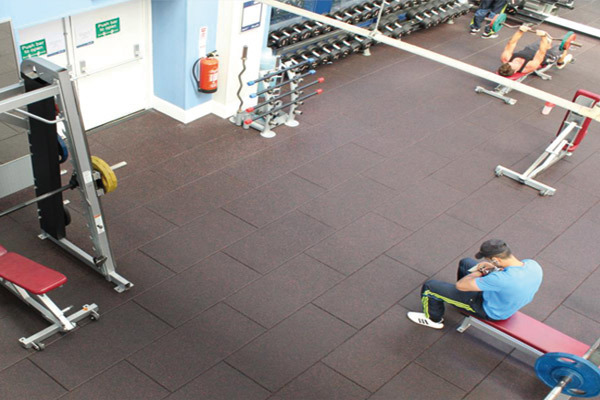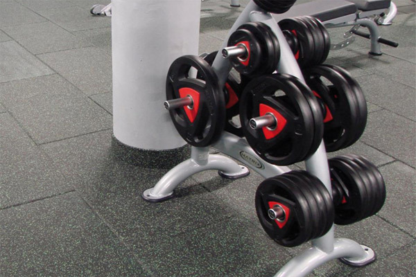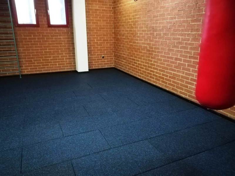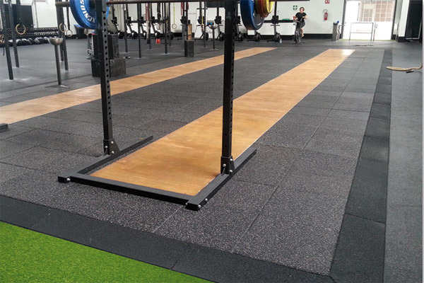 dekorativem und rutschsicherem Gummibelag. Eine extreme Widerstandfähigkeit gegen Hantelaufschläge und ein hoher Schutz des Estrichs zeichnen den Gewichtheber Boden beim Einsatz im Trainings- und