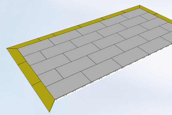 Die Plattenanordnung 0,50 x 0,50 m und 0,50 x 1,00 m erfolgt im Mauerwerksverband. Die Verlegung erfolgt im sogenannten Mauerverband, d. h. die zweite Plattenreihe um eine halbe Platte versetzt