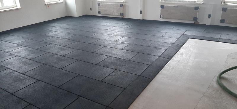 Kraftsportplatte Exxtrem ist ein stark belastbarer Kraftsport Bodenbelag aus hoch verpresstem und gitterverstärktem Gummigranulat mit Oberflächen aus
