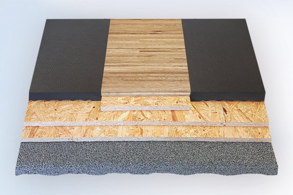 nicht durch Morgenroth Spezialbeläge geliefert. OSB-Platten 15 mm, 2-lagig im Verbund mit verleimten Plattenstößen verlegen. Die erste Lage wird mit transparentem Silicon auf den Vulkanplatten
