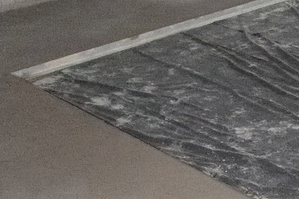 Haftgrundierung vorstreichen und planeben spachteln. Verlegung einer Ausgleichsbahn (Eventualposition nach Bedarf) Vulkan-Ausgleichsbahn in der bemaßten Stärke in die Vertiefung einpassen und mit
