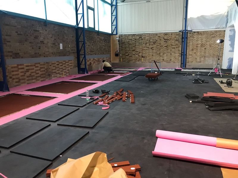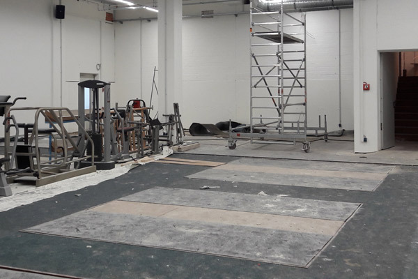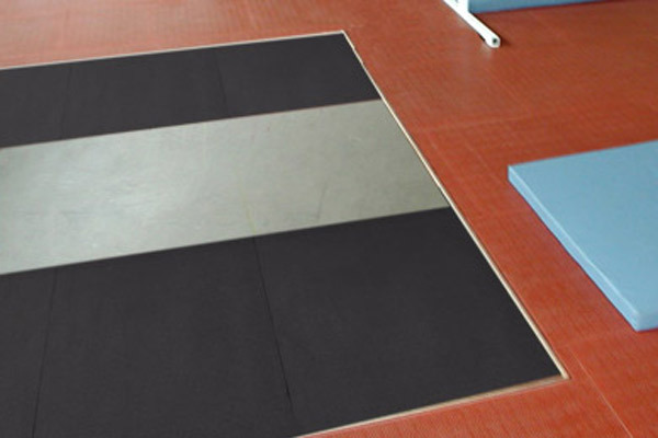 Für extreme Beanspruchungen durch Gewichtheber wird eine flächenbündige Abwurfplattform mit Abwurfplatten / Kraftsportplatten SSB und