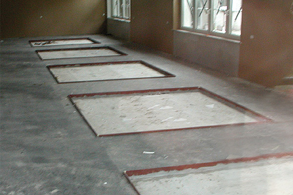 Bauseits wird in den Estrich eine Vertiefung von 105 mm und ein Rahmen aus Winkelprofilen durch einen Estrichleger eingebaut. In die Vertiefung wird der Stemmboden System