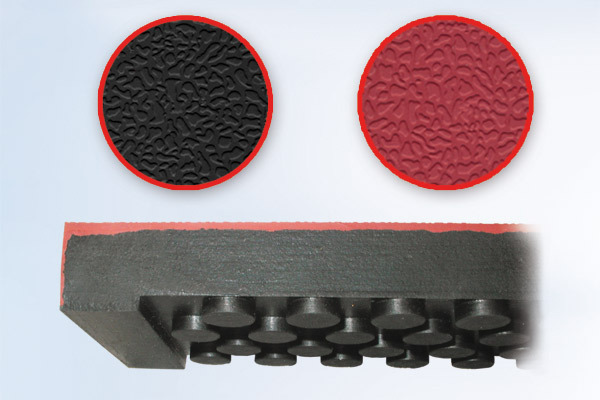 vulkanisiert werden. Die genoppte Unterseite verstärkt die schalldämmenden Eigenschaften der Gewichtheberplattform.