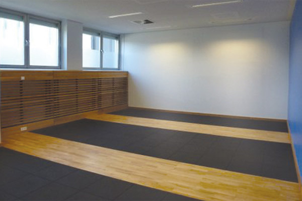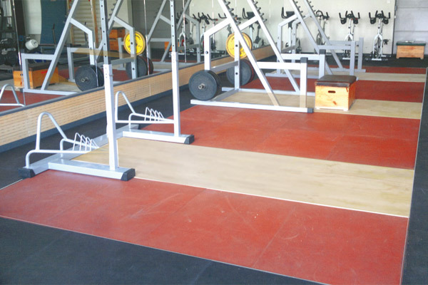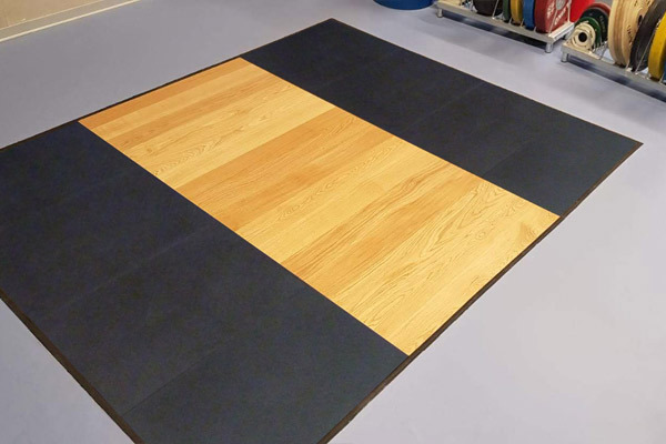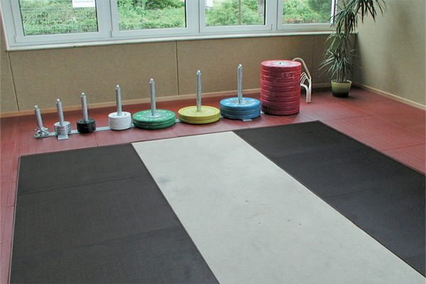 Für die stärksten Beanspruchungen im angrenzenden Trainings-, Kurz- und Langhantelbereich wird die extrem stabile und dämpfende Kraftsportplatte