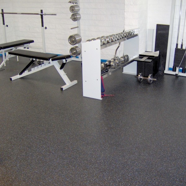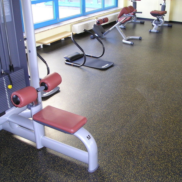 Der Sport Bodenbelag mit 15 % Farbanteil ist ein außergewöhnlich robuster, seit Jahrzehnten bewährter, rutschhemmender und trittschalldämmender Bodenbelag für den Fitnessraum und besteht aus einer hoch verdichteten Mischung schwarzer und 15 % farbiger Gummigranulate und verfügt über eine durchgehende Nutzschicht.