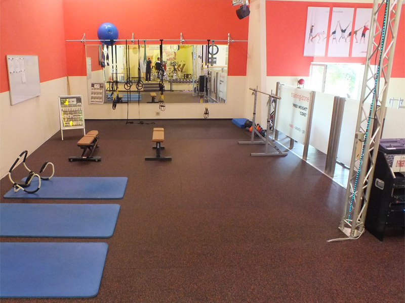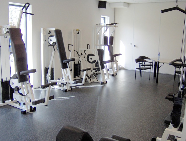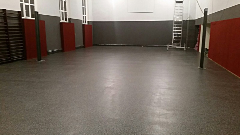 In Fitness- und Trainingsbereichen kann die Oberfläche des Bodenbelags mit 15 % Farbanteil zur Erhöhung der Strapazierfähigkeit und zur Vereinfachung der Pflege mit einer 2-Komponenten-Versiegelung versiegelt werden.
