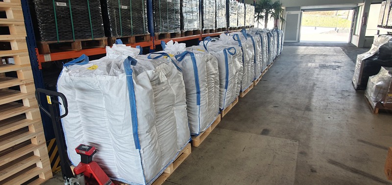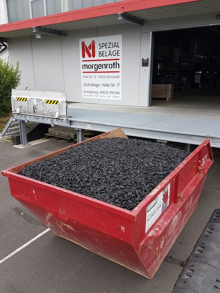 Das Geschossfangmaterial ist eine Mischung aus recyceltem Natur- und synthetischem Kautschuk in ausgesuchter Qualität und Sortierung.