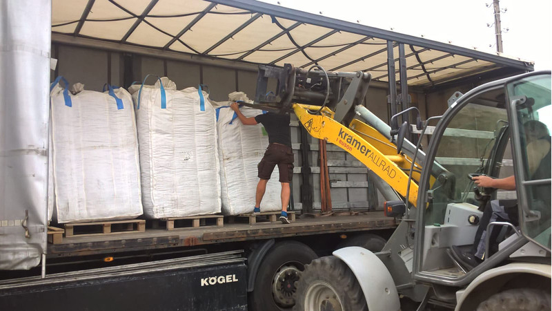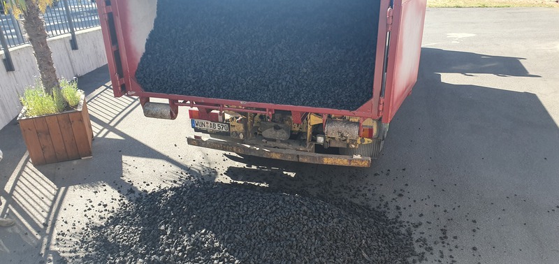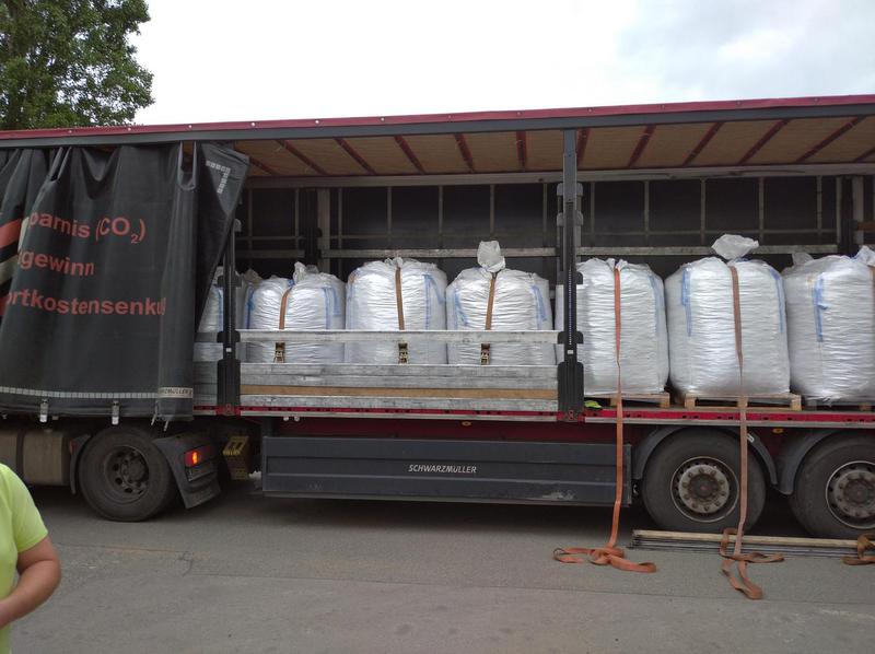 Aufgrund der grob gebrochenen Struktur des Gummigranulats ist es nicht möglich dieses beim Einbau einzublasen oder zu saugen. Gebrauchtes Material und Geschossreste können jedoch abgesaugt werden.