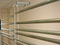 Kurze Rollen, die von Hand auf vorhandene Pappkerne gewickelt wurden, werden mit Gurtbändern verschlossen und im Geräteraum stehend eingelagert. In Kopfhöhe wird bauseits eine Kette montiert, die das Umfallen der Rollen verhindert.