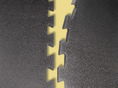 Die 4-seitige Verzahnung der schlittschuhfesten Puzzle Matte aus Gummi ermöglicht eine lose Verlegung der Platten.