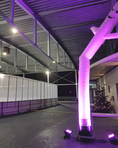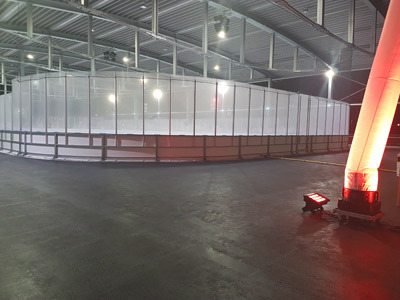 Eisstadion und mobiler Eisbahn zum Einsatz.