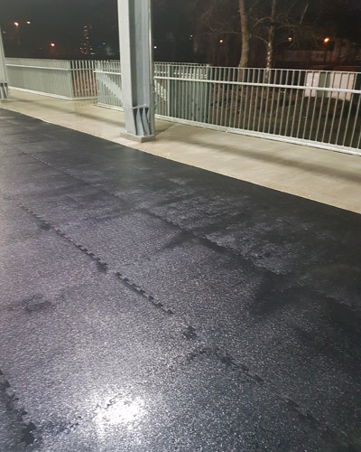 Flächen, die mit Schlittschuhen betreten werden. Der vielseitige Gummibelag bietet geprüfte Rutschhemmung bei trockener, wie auch bei nasser Oberfläche, sowie dauerelastische Stoßdämpfung und