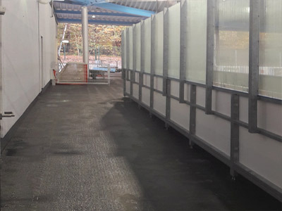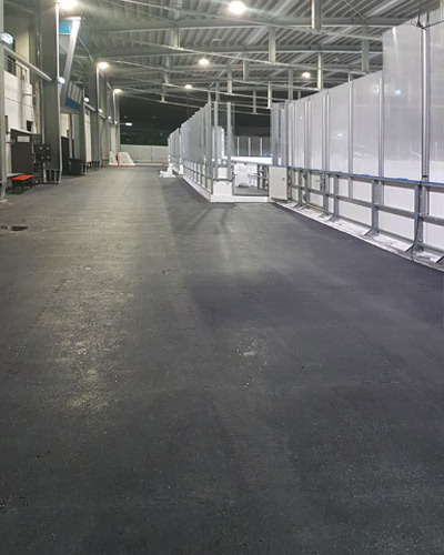 Sämtliche Laufzonen im Eisstadion mit und ohne Belastung durch Schlittschuhkufen, Rundumlauf, Umkleiden, Bereiche hinter der Bande, Zuschauerbereiche, Schuhwechselzonen und Kioske. Zur Abdeckung