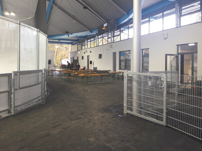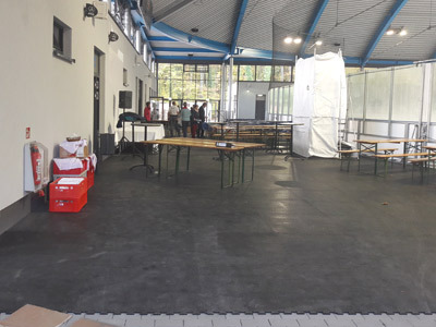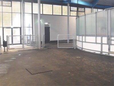 Puzzleplatten in Laufzonen mit und ohne Kufenbelastung, im Rundumlauf, auf großen Flächen, stark frequentierten oder teilüberdachten Flächen, werden in einem Eisstadion über Gebühr belastet und